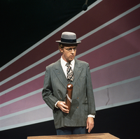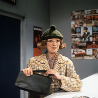Werkopnames geschoten op de draaidag van 10 februari 1983. Te zien zijn Andre van Duin, Corrie van Gorp en Frans van Dusschoten.