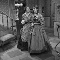 Foto's geschoten op de set van De erfgename op 17 december 1959. Te zien zijn o.a. Max Croiset als dr. Sloper, Manon Alving als Catherine Sloper, Fien Berghegge als Eliza Almond en Kitty Janssen als Marian Almond