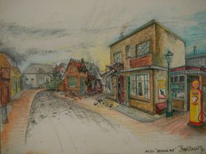 Decortekeningen, maquette en achter-de-schermen foto's van artidirector Freek Biesiot voor De zomer van '45.