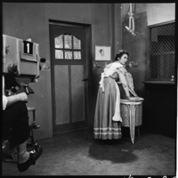 Werkfoto's geschoten op de set van Diamantstad op 2 juli 1958. Te zien zijn Mia Goossen en Jan Lemaire sr.