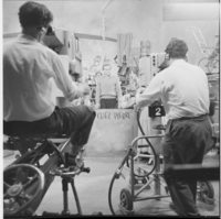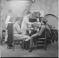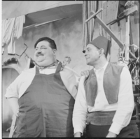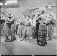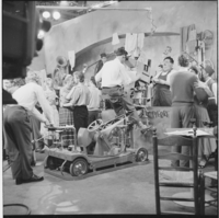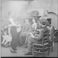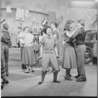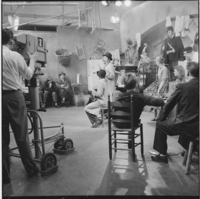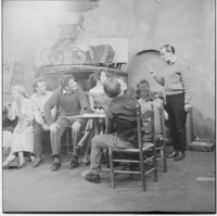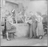 Enkele foto's genomen op de set van Een avond in Saint-Germain des Prés geschoten op 5 november 1955. Te zien zijn o.a. de acteurs Tom Manders, Sacha Dénisent, Piet Hendriks en Jan Blaaser. Daarnaast is er ook een foto van de aankondiging door omroepster Karin Kraaykamp. Verder aanwezig op de foto's zijn Frans Berkhout (piano), Eddy Deege (bas) en Wim van der Kwast (arcordeon) van het Trio Saint Germain des Pres en de muzikanten van The New Orleans Seven (Hans IJzerdraad (tuba), Frits Hotz (Trombone), Hans Roly (cornet), Pim Gras (klarinet) en Dan Golberdinge (piano))