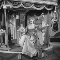 Portret van Henk van Ulsen als Ranonkel, Jules Croiset als Augustijn, Hans Otjes als Jut, Martin Brozius als Aernout Koffij, Ab Hofstee als Hildebrandt Brom, Rob de Nijs als Bertram Bierenbroodspot, Wieteke van Dort als Jul en Marlies van Alcmaer als hertogin Mélisande |