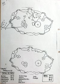 Situatieschets, plattegrond van landschap met camerastandpunten en scenes