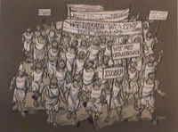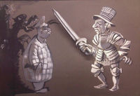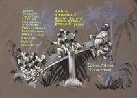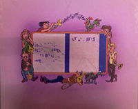 Voor een programma over Azië. Titel en uitzenddatum onbekend. Delen van de illustraties op de titelkaarten kunnen met behulp van splitpennen, schuifjes, ijzerdraad of doorzichtig plastic folie bewegen. Deze vorm van animatie wordt in de jaren vijftig en zestig veel gebruikt voor televisie omdat het een snelle en goedkope manier is om bewegende grafiek te maken. De titelkaarten worden live in de studio door de toneelmeester bewogen.