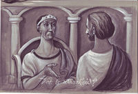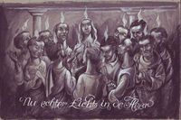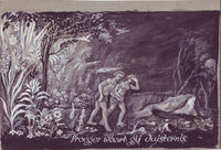 Serie illustraties met titels met Bijbelse voorstellingen voor een onbekend programma.