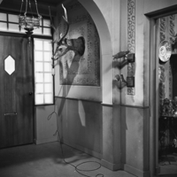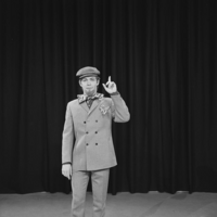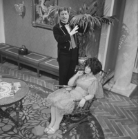 Enkele foto's geschoten door F. van Geelen op de set van Labberdibbus tijdens de opnames van aflevering 2 "Jacht op een kameel" op 23-12-1968. Te zien zijn Lex Schoorel als Labberdibbus en Bert Dijkstra als regisseur.