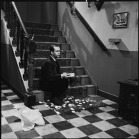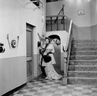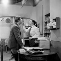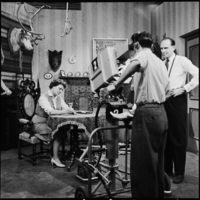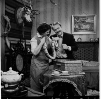 Foto's genomen op de set van Pension Hommeles op 2 november 1957 tijdens opnames van aflevering 2 "Twiet-twiet-twiet".