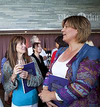 Na de presentatie van het boek Goedenavond dames en heren in de Theaterzaal van Beeld en Geluid wordt er nagepraat en (opnieuw) kennisgemaakt tijdens een gezellige borrel.