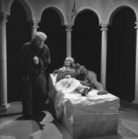 Scène waarin Julia het kruidenmengsel van broeder Lorenzo drinkt en daardoor raakt in een schijndood. De scene wordt uitgeprobeerd met twee verschillende outfits voor Paula Petri. De versie die wordt uitgezonden is met de wiite nachtjapon.