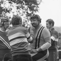 Laatste training van Henk van Montfoort (VARA), Ted de Braak (NCRV, geheel rechts) is er wel gerust op.... |