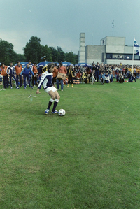 Daar is ze dan! Daar rechts : Neelie! Toen nog met dubbele achternaam, daarnaast Ad Ploeg, de scheids, Ria Beckers en staand Peter Faber | ||