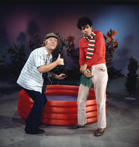 Foto's genomen op de set van De stratemakeropzeeshow op 13 november 1972 tijdens de opnames van aflevering 10 "Lief".