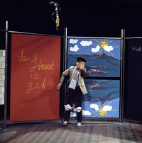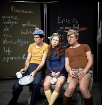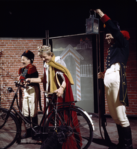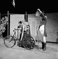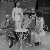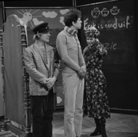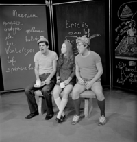 Diverse werkfoto's van De Stratemakeropzeeshow met Joost Prinsen, Wieteke van Dort en Aart Staartjes uit 1973.