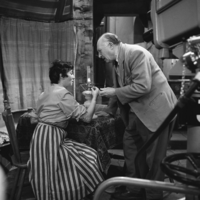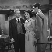 Enkele foto's genomen op de set van Terugkeer uitgezonden op 19 november 1959. Te zien zijn o.a. Winnifred Bosboom, Jan Retèl, Hans Culeman en Ben Groenier.