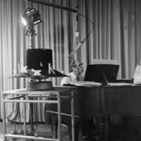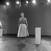 Werkfoto's geschoten op 15 augustus 1959. Te zien zijn Elisabeth Andersen, Will Hartingsveldt en omroepster Ansje van Brandenberg.