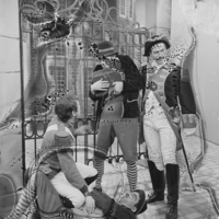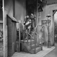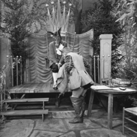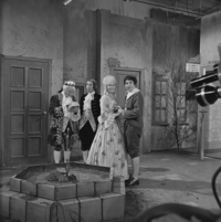 Foto's genomen door H. Swart op de set van Vrouwtje Bezemsteel tijdens de opnames van aflevering 7 "De edelman en de muzikant" op 22 maart 1965. Te zien zijn Bob Goedhart als edelman, Arthur Boni als Muzikant, Wim Hoddes als de waard, Betty Kapsenberg als oud vrouwtje en Ida Brons als Toverfee.