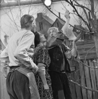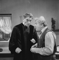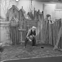 Foto's genomen door H. Swart op de set van Vrouwtje Bezemsteel tijdens de opnames van aflevering 13 "De vrek die zijn geld begroef" op 27 december 1965. Te zien zijn Frits Butzelaar als de vrek, Sjef van Leeuwen als de schoenmaker, Elisabeth Versluys als vrouw van de schoenmaker, Ad Hoeymans als eerste belastingontvanger en Floor Koen als tweede belastingontvanger.