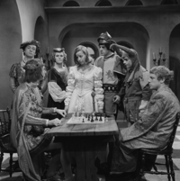 Foto's genomen door Th. van den Brink op de set van Vrouwtje Bezemsteel tijdens de opnames van aflevering 10 "De koning die niet tegen zijn verlies kon" op4 oktober 1965. Te zien zijn Siem Vroom als de koning, Diana Dobbelman als de prinses, Jeroen Krabbé als de soldaat, Bab Wijsman als raadsheer, Huib Rooymans als de vreemdeling, Mary Michon als de hofdame, Hidde Maas als edelman en Cees Schaay als de hofnar.