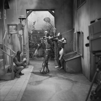 Foto's genomen door R. Frings op de set van Vrouwtje Bezemsteel tijdens de opnames van aflevering 4 "De Katenknecht" op 17 februari 1965. Te zien zijn Dick Scheffer als Archibad, Lies de Wind als Markiezin, Jaap Hoogstra als Melkman, Wiebe Brandsma als agent en Marijke Morley als dienstmeisje.