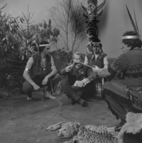 Foto's genomen door F. van Geelen op de set van Vrouwtje Bezemsteel tijdens de opnames van aflevering 16 "Graaf Foto en de fotograaf" op 18 april 1966. Te zien zijn Frits Butzelaar als Graaf Foto, Jos Knipscheer als Jasper, Sjef van Leeuwen als Dubbele Veer, Mary Eggink als Verrukkelijke Bloesem, Allard van der Scheer als Fotograaf,John Smit als Medicijnman, Rudolf Lucieer als Geoefend Oog enAd Hoeymans als Moedig Hert.