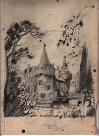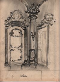 Schetsen voor de achterdoeken van Peter Zwart voor de wintermodeshow 1952 van de NCRV.