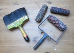 Met verf en verschillende schildertechnieken krijgen de kale decorschotten een nieuw leven. Stucwerk imiteren de decorateurs door met een blokwitter, een brede rechthoekige kwast, aan de ene kant in lichtgrijs te dopen en de andere kant in het middengrijs en die dan door elkaar op de wand te smeren waardoor er een soort wolkenachtig effect ontstaat. Echt behang wordt een enkele keer gebruikt, maar meestal wordt het behang geschilderd door middel van een uitgesneden sjabloon en een verfspuit of door middel van een zogenaamd behangrolletje. Als een decor idikke bruine balken behoeft dan worden die gevouwen van karton en met houtmotief geschilderd.