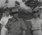 Aankomst op het vliegveld Kemajoran van Lord Louis Mountbatten, Opperbevelhebber der geallieerde strijdkrachten in zuid-oost Azie. Mountbetten inspeceteert de aangetreden troepen. Verder is ook de aankomst van Generaal Sir Montague Stopford op Kemajoran te zien. Ook hij inspecteert de troepen.