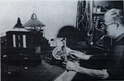 Oscar Sillem bezig met restauratiewerkzaamheden, Omroepmuseum 1987