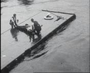 Niet erg serieus onderwerp over het redden van drenkelingen. Te zien is hoe er mensen gered worden en er staat publiek aan de kant te kijken.