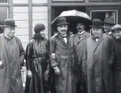 Bioscoopjournaal-item uit Hollands Nieuws met hierin aandacht voor een reddingsdemonstratie. Een gezelschap poseert in de buitenlucht (regenachtig weer). Zij zijn toeschouwers bij een reddingsdemonstratie. Het is vermoedelijk op 29 of 30 augustus 1924 gefilmd en om onduidelijke redenen (in ieder geval administratief) terecht gekomen in een journaal van oktober van dat jaar.