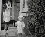 Familiefilm van Piet Schendstok. De kleine Rudi staat voor het raam met zijn neus tegen de ruit gedrukt en stoft een beeldje af in de vensterbank. Hij klopt de stofdoek uit bij de tuindeur. Er loopt een vrouw voorbij met een paraplu en Rudi wordt door de huishoudster aangekleed. Het jongetje stapt in een wandelwagentje en gaat met haar naar buiten; op pad in Amsterdam-Zuid.