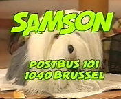 Een aflevering wordt besloten met de vermelding van het adres. Al blaffend vraagt Samson hiervoor aandacht. Een enkele is het niet Samson die het adres-scherm introduceert. In een aflevering waarin de clown Bassie te gast is verzorgt hij dit. In plaats van te blaffen miauwt Bassie.