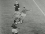 Rechtstreeks verslag van de derde en laatste wedstrijd in Groep C tussen Portugal - Brazilie 3-1 (rust 2-0) vanuit stadion Goodison Park in Liverpool, tijdens het WK voetbal in Engeland. Commentaar bij de wedstrijd van Bob Spaak. Dankzij twee doelpunten van Eusebio (De zwarte parel van Mozambique) verslaat WK-debutant Portugal titelverdediger en tweevoudig wereldkampioen Brazilie en kwalificeert zich als groepswinnaar voor de kwartfinales. Brazilie, met de geblesseerde sterspeler Pele, eindigt als derde in Groep C en is verrassend uitgeschakeld in het toernooi.