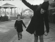 Beelden van spelende kinderen in een winters landschap. Er wordt gegleden over de gladde stoepen, geschaatst en een sneeuwpop gemaakt. De hond doet gezellig mee.