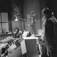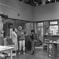 Foto's genomen tijdens de opnames van De grote klok op 15 oktober 1981. Te zien zijn o.a. Pim Vosmaer, Anna van der Staak en Bruni Heinke
