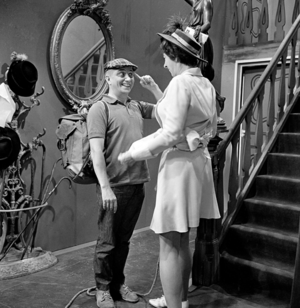 Werkfoto's geschoten door F. van Geelen op de set van Ja zuster, nee zuster tijdens de opnames van aflevering 13: "Pakjes perikelen". De foto's zijn gemaakt op 4 october 1967.