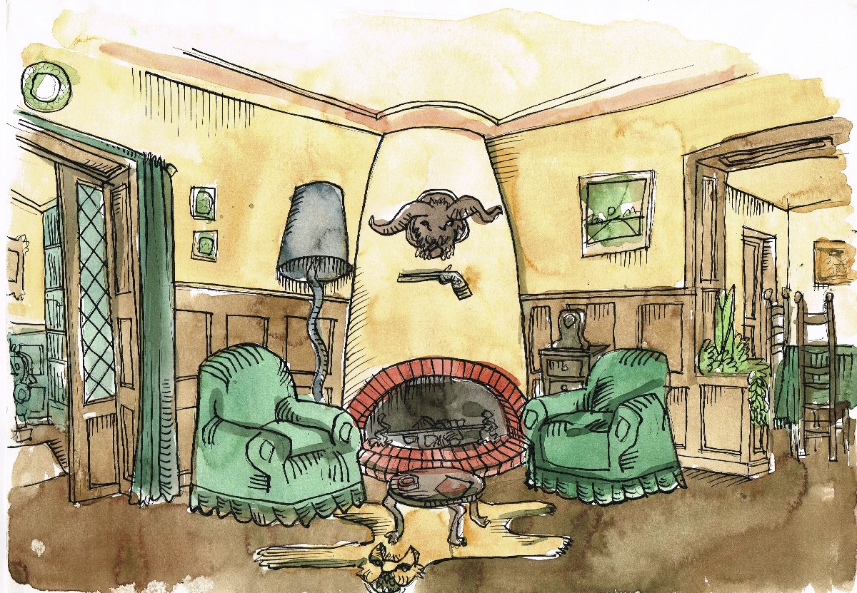 Decortekening van Huub van Gestel en Jaap Binnerts voor Titaantjes (KRO, 1983). Collectie Beeld en Geluid, collectie nummer LA2753, schenking van Anneke Hoog Antink