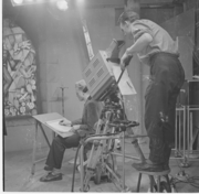 | 11 dec 2013 12:12 | Zwart Barnstetter 1952.jpeg (bestand) | 65 kB | Peter Zwart schildert het behang op de set van ''Herexamen voor Barnstetter'' augustus 1952. Foto door Philips Telecom Hilversum, nummer T241-13. | 1 | |