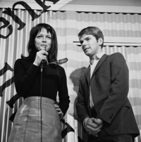 Foto's geschoten op de set van Fanclub, op 11 april 1967. Te naast presentatoren Judith Bosch en Ati Dijckmeester zijn Ekspetion, Q65, Big John Russel, Julie Felix en Van Morrison met de Blizzards.