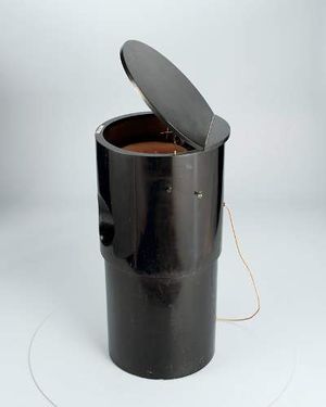 Het lijkt op een potkachel of pedaalemmer, maar is een exclusieve 78-toerengrammofoon van de Duits-Nederlandse fabrikant Ultraphon.
