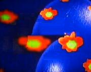 TV2 krijgt in 1994 een nieuw logo dat het tot 2003 heeft uitgehouden. Deze leader bestaat uit een computeranimatie met balletjes, rook en vlammen waaruit het logo ontstaat.